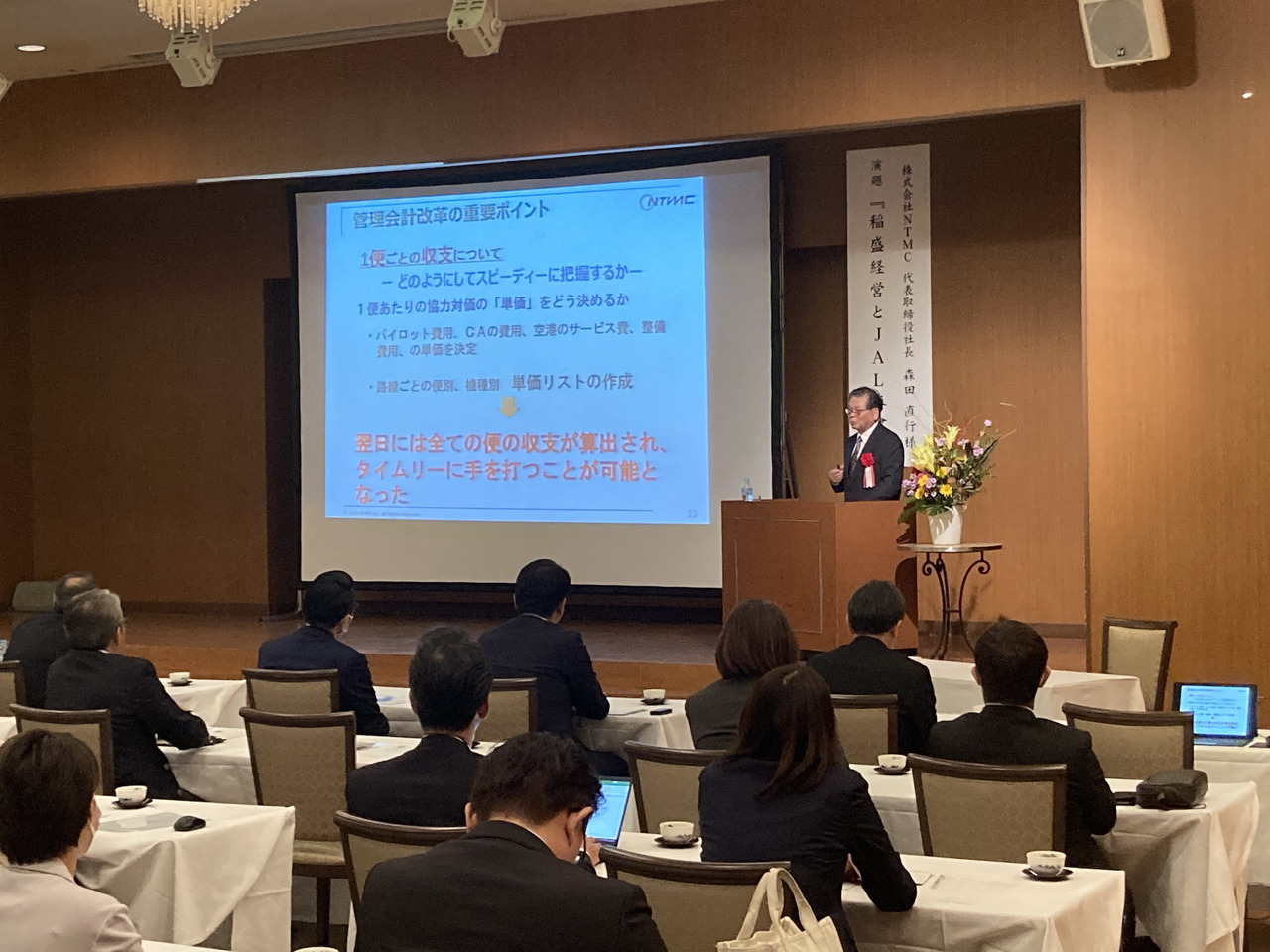 『稲盛経営とJAL再建』をテーマに講演する 森田直行