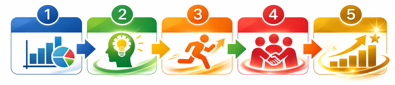 ①数字の見える化➡②意識の変化➡③行動の改善➡④強いチーム➡⑤会社の成長