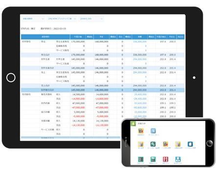 iPadやandroidなどのタブレット、スマートフォンでも採算表を見ることが出来るので、たとえば外出先や移動中でも採算表を簡単らくらくに確認することが可能です。これまでは会社に戻らないと見ることが